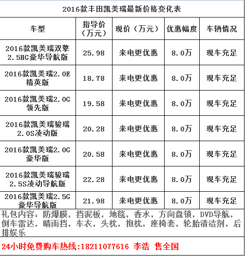 轉(zhuǎn)載請(qǐng)注明來自福建省鑫越群貿(mào)易有限公司,本文標(biāo)題:《豐田凱美瑞最新報(bào)價(jià)解析,全面洞悉凱美瑞價(jià)格體系》