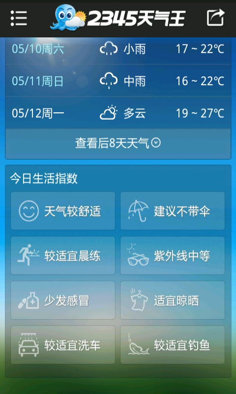 生活指數(shù)參考:結(jié)合天氣數(shù)據(jù),為您提供穿衣、出行、運(yùn)動(dòng)等生活建議,讓您的生活更加便捷。