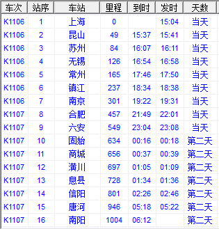 最新K1108時(shí)刻表如下: